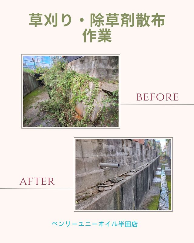 ベンリーユニーオイル半田店では除草剤の散布に限らず防草シートの設置なども行っております。